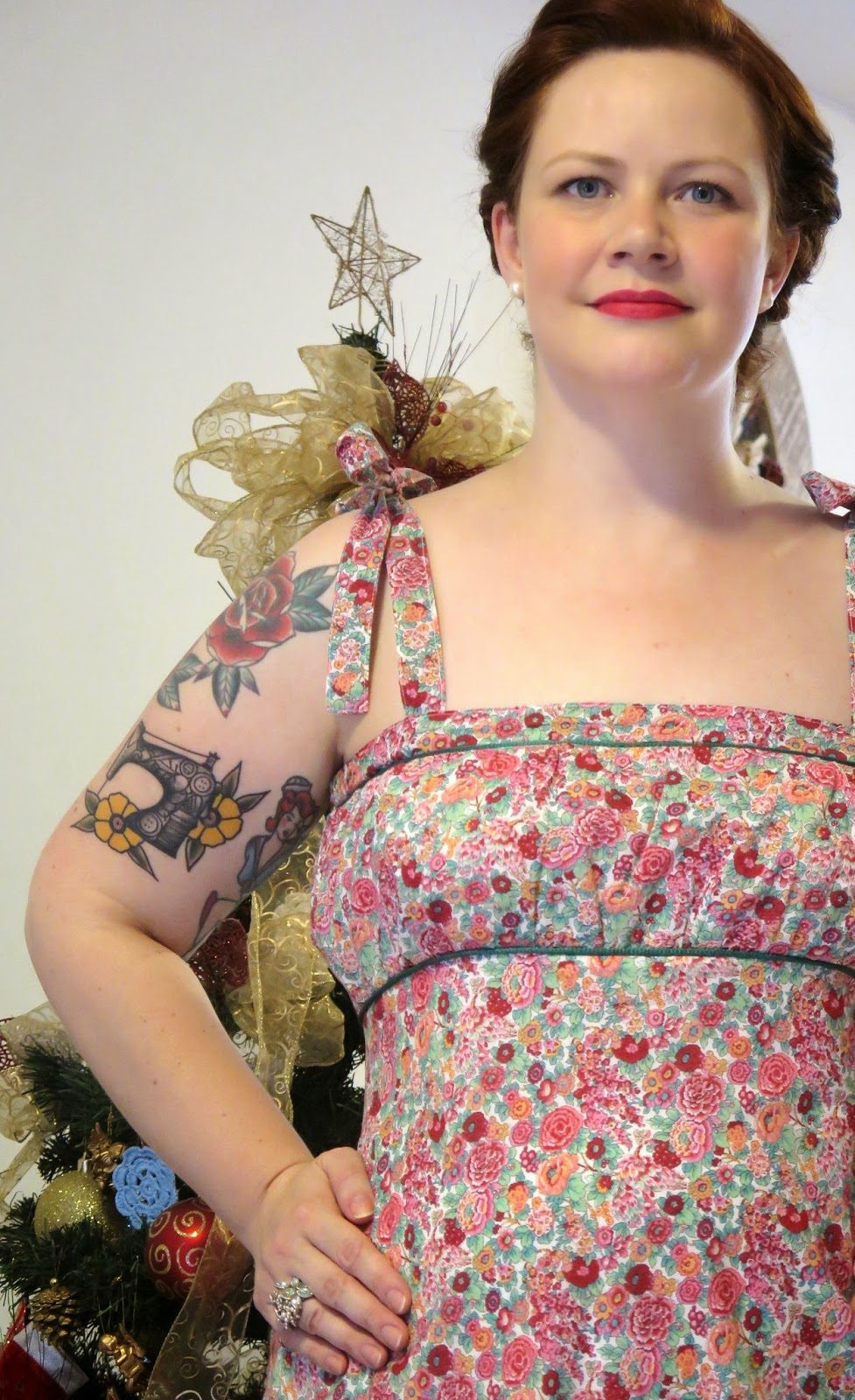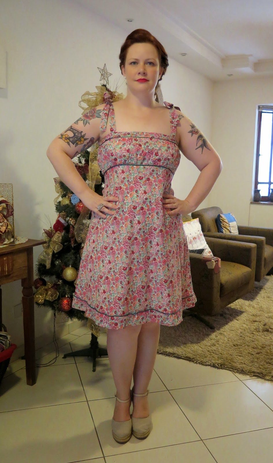 No dia do Natal, resgatei o primeiro vestido que fiz com tecido Liberty, com modelo tirado no começo de 2012 de um vestido da Siberian que eu usei tanto que já tinha dado sinais de cansaço. Tem lá seus defeitos de iniciante, mas gosto dele mesmo assim. Tem uma bonita história por trás dele, entende? Nos pés, a irmã clarinha da espadrille preta que eu amo. Brincos de pérola e um dos meus anéis favoritos, que tenho faz tempo.