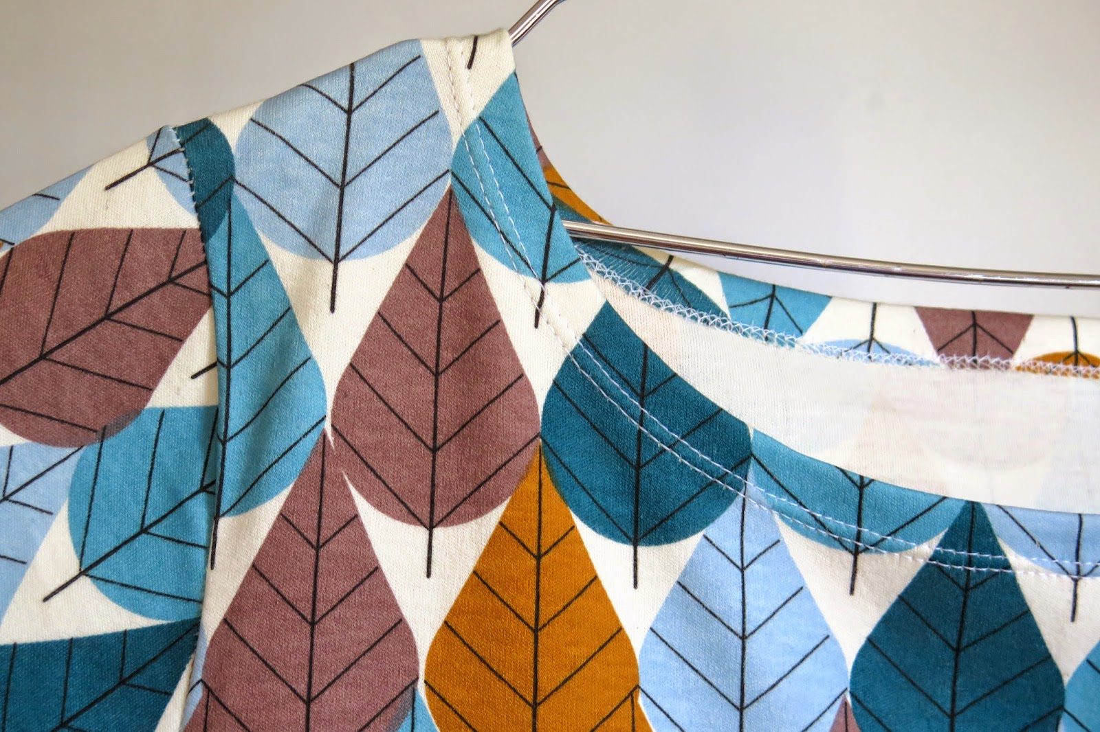Eu particularmente não gostei da maneira que o decote canoa foi feito, com pontos ziguezague aparentes no direito da peça. Optei por fazer também com a agulha dupla.