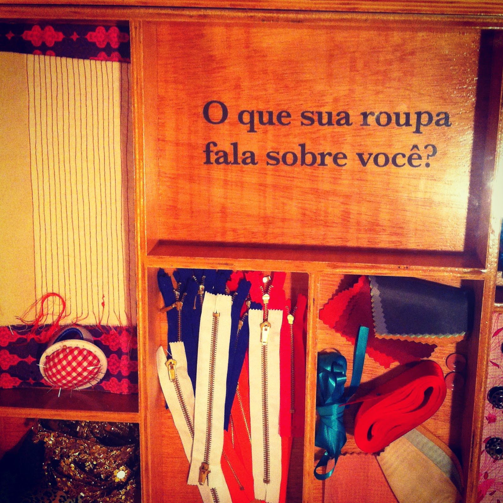 Ainda na aula, comecei a fazer as últimas peças do kit, que são feitas para pendurar e guardar itens de costura. Estou pensando ainda em como vou acomodá-las no meu quartinho, mas tudo bem, rs!
