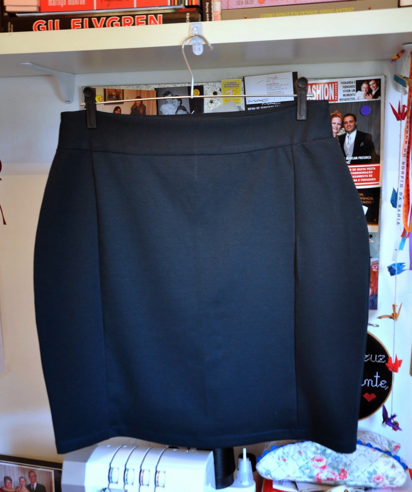 Saia lápis: malha ponto roma comprada na Mediterrâneo (no Bom Retiro), molde Mabel, do site Colette Patterns (EUA).