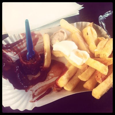 Currywurst (aquele prato de salsicha com molho condimentado e batata frita com maionese, super light e imperdível, rs). Os dois melhores são estes: