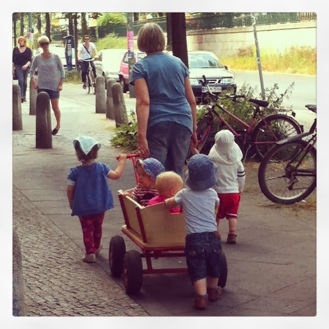 As crianças são lindas e criadas de um jeito muito independente e sem frescura alguma. Comem com garfo e sozinhas, comem também maçãs inteiras (sem dar descascada e picada num potinho para facilitar, por exemplo) desde muito cedo, ajudam as outras crianças a passear e não são de fazer manha na frente das outras pessoas.