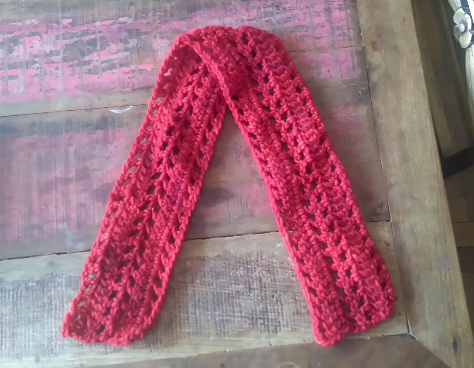 Não segui nenhuma receita, fui fazendo de cabeça: uma carreira de ponto alto, a carreira seguinte de pontos altos intercalados por uma correntinha, para dar mais leveza e flexibilidade ao cachecol.