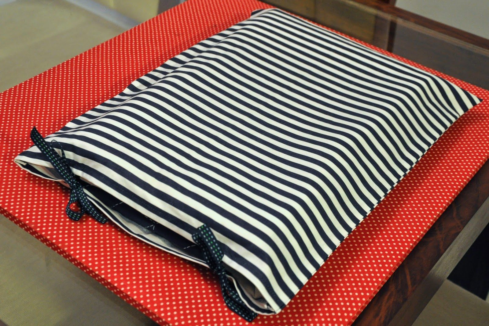 Terminada a colcha, fui pensar em um embrulho que fosse útil quando a colcha não estivesse em uso e que não chegasse muito amassado ao destino (já que enfrentaria muitas horas dentro da mala da vovó Sonia).