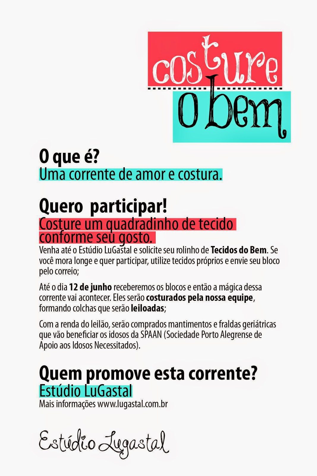 Dia desses recebi o convite para participar de uma iniciativa muito bacana da Lu Gastal, o “Costure o Bem”. Acho maravilhoso a gente usar o conhecimento e os recursos de alguma coisa que a gente sabe bem, neste caso costurar, para fazer algo que gere um resultado maior, para ajudar o próximo.
