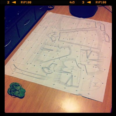 Antes: Molde do vestido Crepe, enfeitando o chão da minha sala.