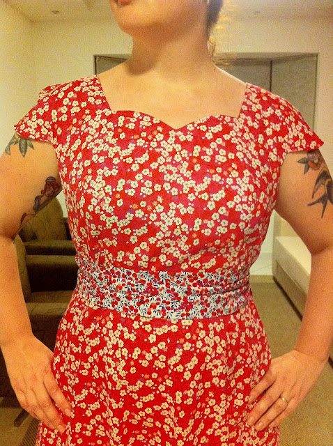 4. Precisei tirar 9,5cm de tecido da saia antes de fazer a barra, para deixar o vestido na altura dos joelhos após finalizar com uma barra lenço. Então creio que ele pode ser de bom comprimento para pessoas mais altas (Eu tenho 1,68m de altura).