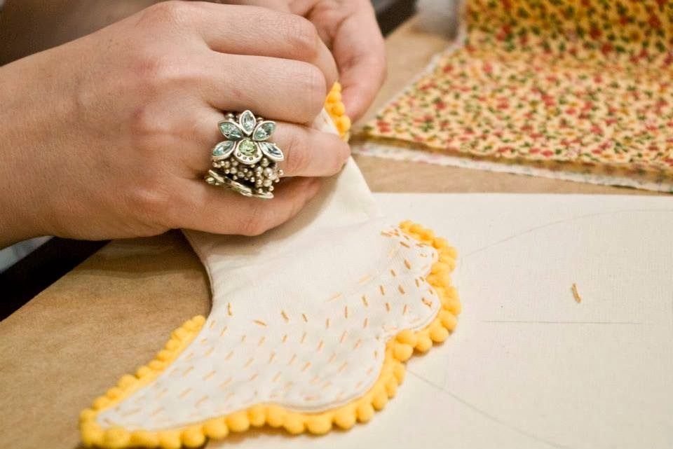 Na aula de costura, muitos detalhes para finalizar o vestido para o casamento dos meus amigos.