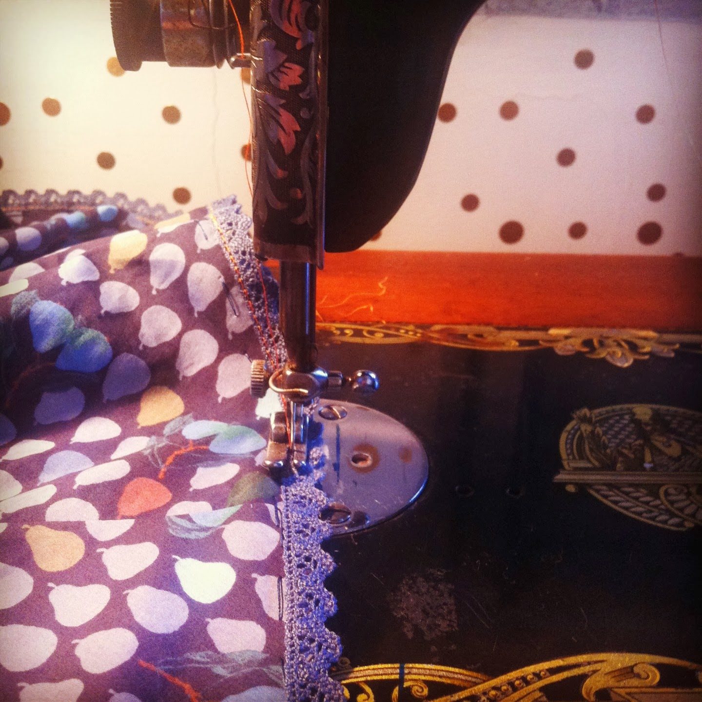 Na 4a feira passada eu fiz aniversário e me dei de presente uma saia godê com tecido de pêras e acabamento em rendinha de algodão. Eu contei como foi o meu dia aqui.