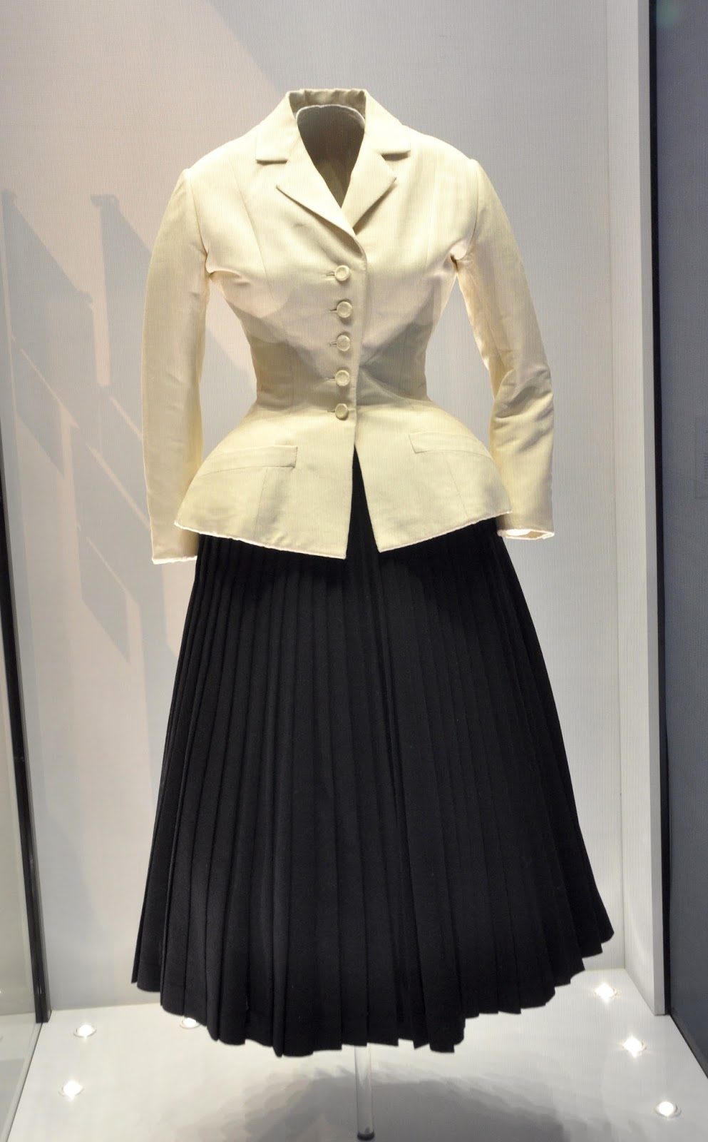 Lá também estava exposto o tailleur da coleção Corolla, que inaugurou o New Look do pós-guerra: