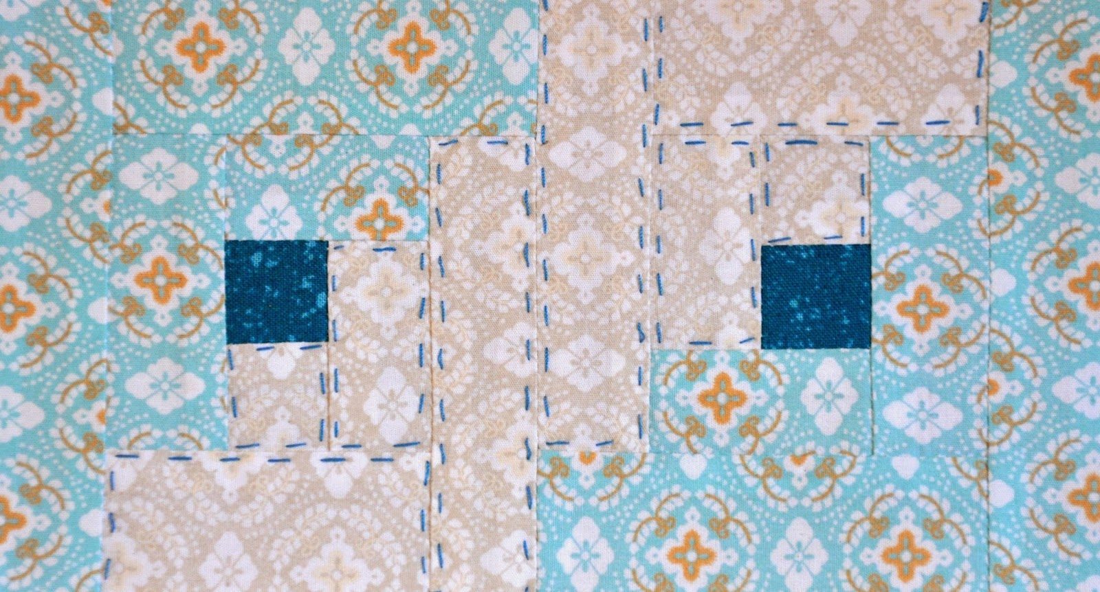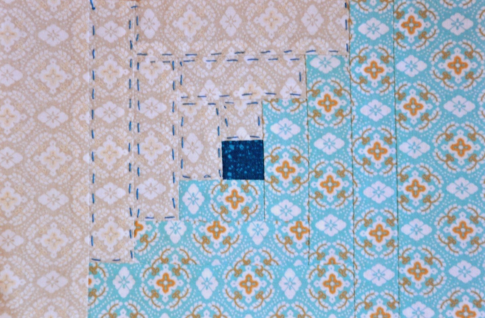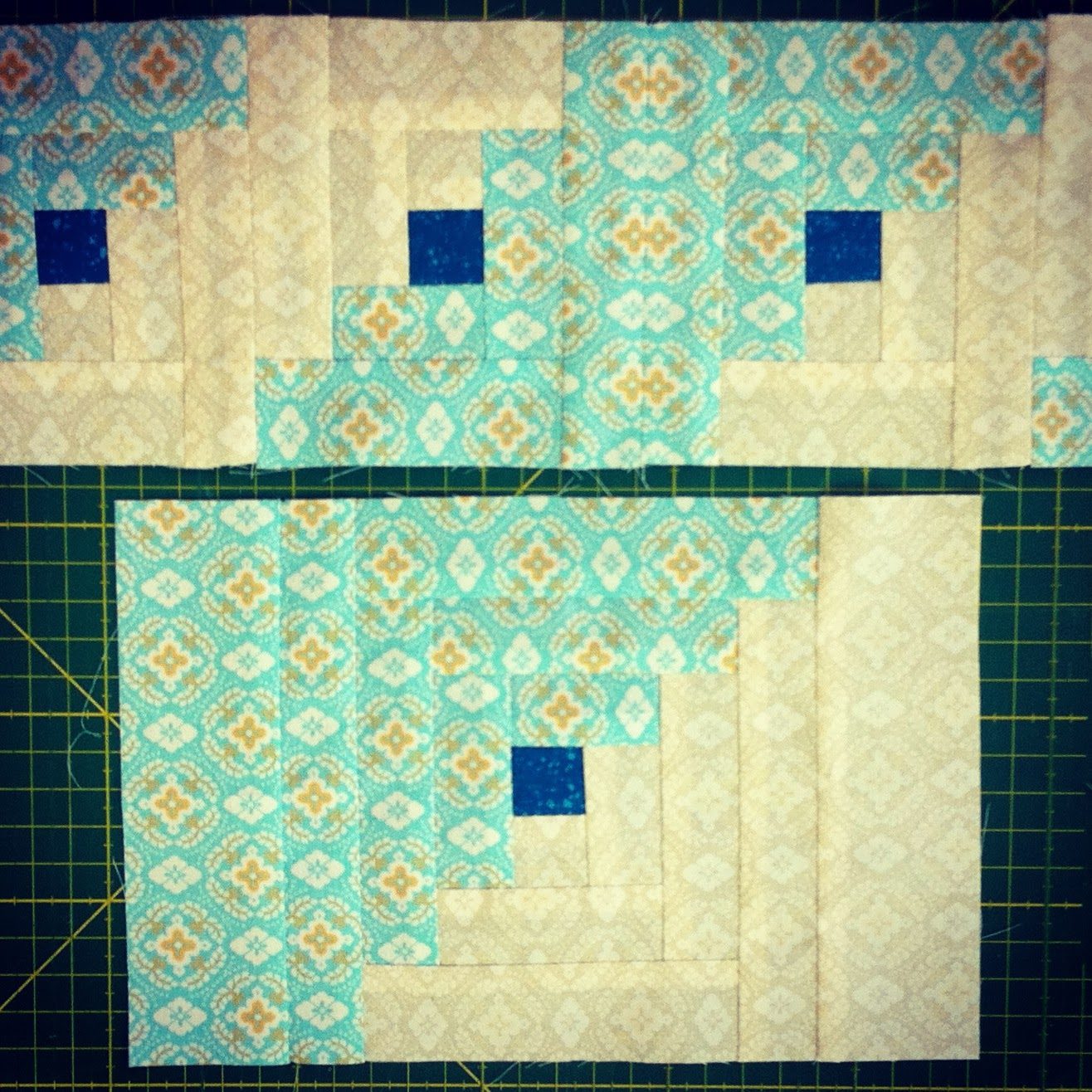 Na aula de Patchwork da semana passada eu prossegui com o último projeto em log cabin, da frasqueira. Montei os blocos, formei a tira que formará a parte da frente da peça e também parte da tampa.