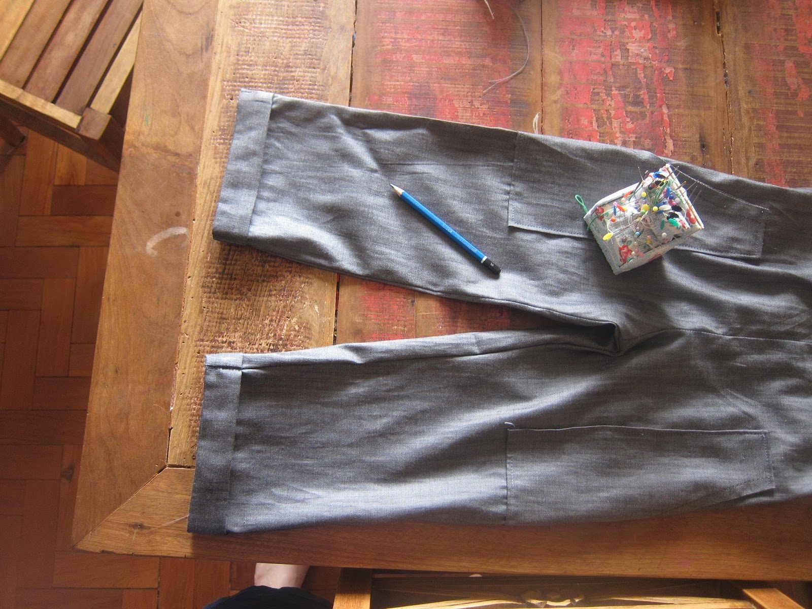 Eu tenho feito cada vez menos vestidos. Tenho muitos e usei tanto que não são mais a minha primeira opção quando quero costurar algo novo. Mas as variações de peças únicas continuam me interessando muito! Por isso mesmo, pouco tempo depois de terminar um macacão de moletom, resolvi fazer uma jardineira de sarja.