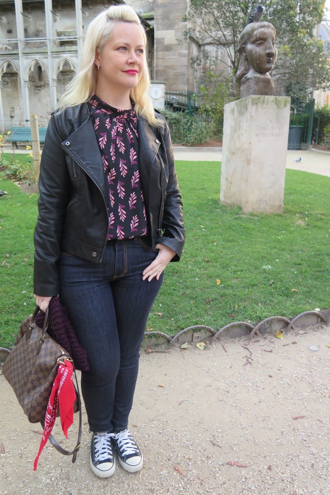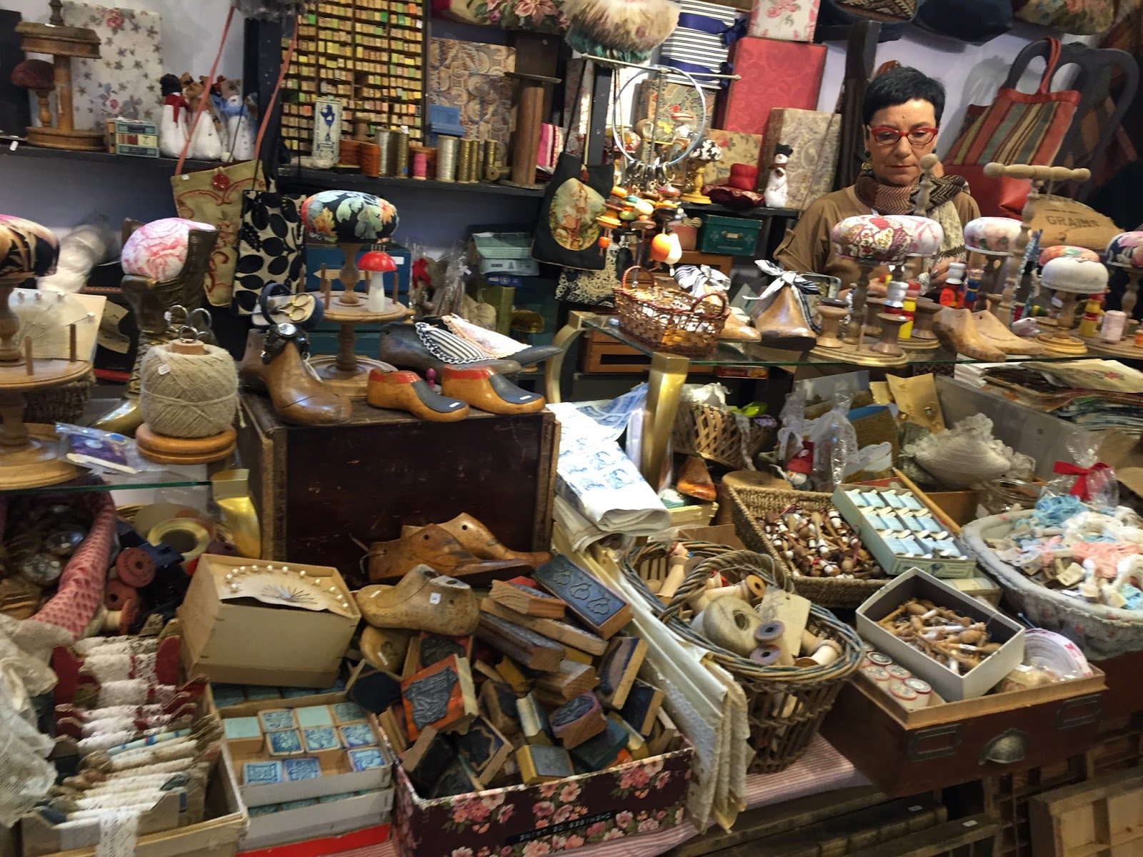 Deixei para usar minha blusa de tricô no último dia da viagem, pois seria o mais frio entre todos os que estaríamos em Paris. Neste dia fomos passear em Montmartre (só fui para ter certeza que eu não ficaria chateada por não ter ido ver os tecidos de lá… no final só abasteci meu estoque de zíperes invisíveis, rs!), depois fomos comer perto do Louvre e fazer compras no Mercado de Flores pertinho da Notre Dame.